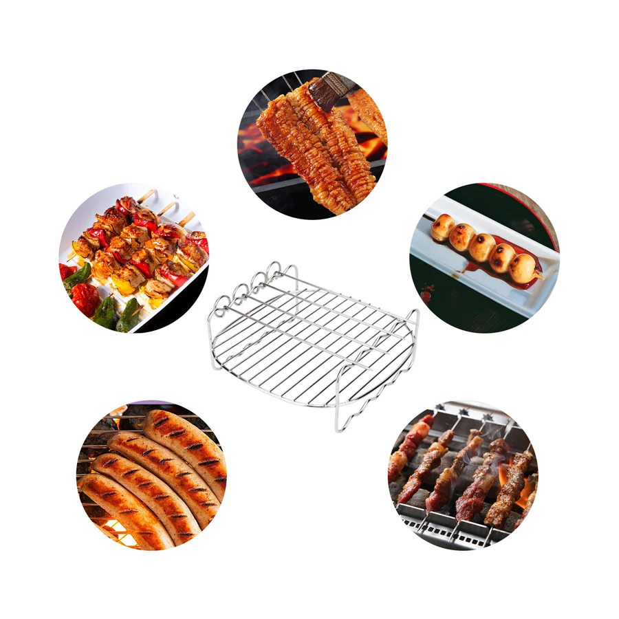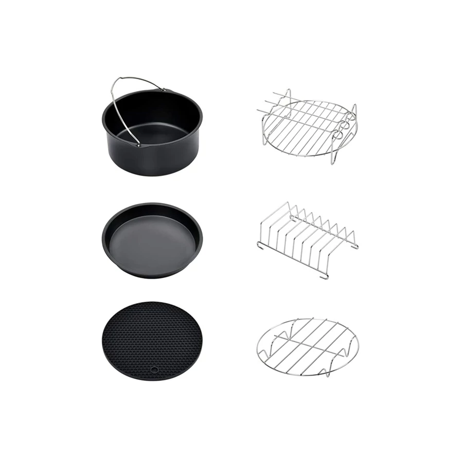 S praktickým príslušenstvom, ktoré je súčasťou balenia, môžete ľahko pripraviť celý rad pokrmovv akejkoľvek teplovzdušnej fritéze. Balenie obsahuje všetky nástroje, ktoré potrebujete na to, aby ste čo najlepšie využili svoju teplovzdušnú fritézu v každodennom živote. Či už ide oraňajkové toasty, pečenie pizze alebo dokonca ľahké pečenie kurčaťa na ražni, fritovanie horúcim vzduchom možno s použitím tohto príslušenstva použiť kedykoľvek.