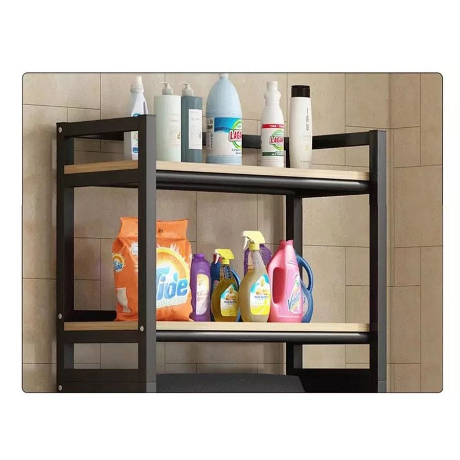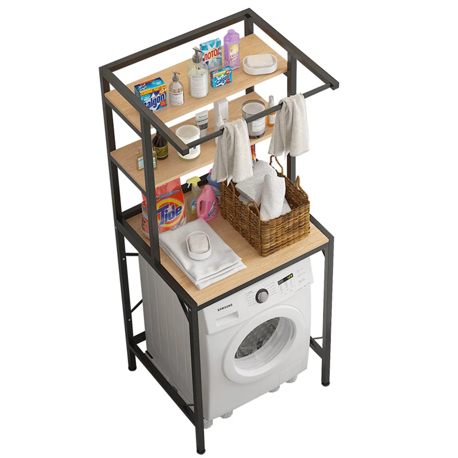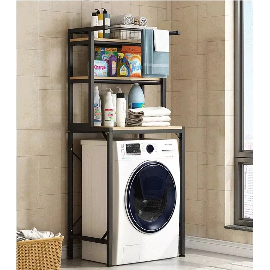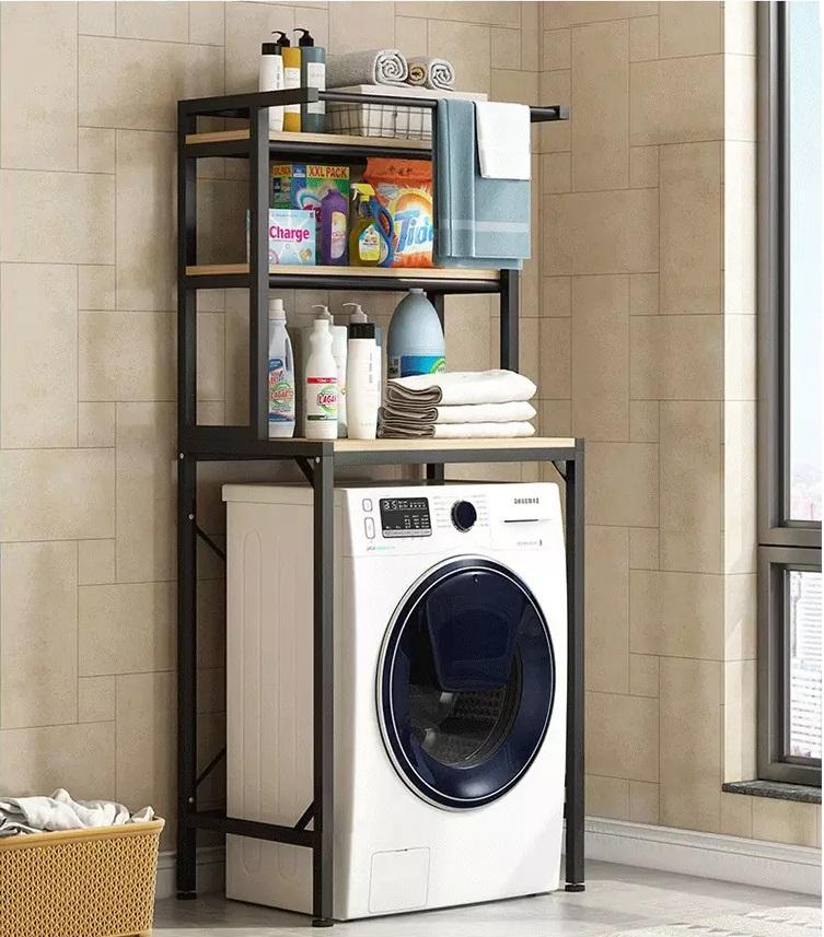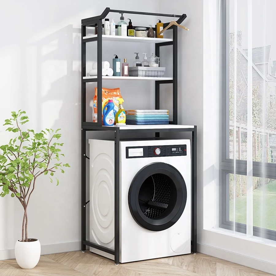 Jeho použitie maximalizuje úložnú kapacitu a zdvojnásobuje využiteľnosť priestoru, ktorý zaberá práčka, tým, že poskytuje plnohodnotný úložný priestor okrem práčky. Konštrukcia police umožňuje prehľadné a pohodlné usporiadanie domácich spotrebičov, kúpeľňových a čistiacich potrieb, takže všetko je prístupné na mieste použitia bez zbytočného ohýbania. Pracie prostriedky, aviváže a iné citlivé chemické výrobky môžu byť uložené mimo dosahu detí a domácich zvierat, čím sa zvyšuje bezpečnosť v domácnosti. V hornej časti regálového systému sa nachádza sušiak na uteráky, ktorý možno použiť na zavesenie uterákov, osušiek alebo dokonca županov.
