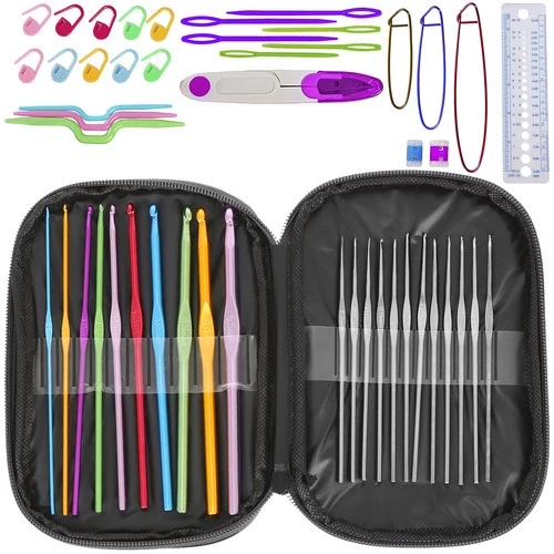 50-dielna sada háčkovania je ideálna pre začiatočníkov aj pokročilých háčkovateľov. Obsahuje všetko, čo potrebujete na ručné práce vrátane: rôznych háčikov na háčkovanie, nožníc, pravítok, plastových ihiel, držiakov na stehy, počítadiel, cievok a špendlíkov. Príslušenstvo je k dispozícii v rôznych farbách, vďaka čomu ho možno ľahko rozlíšiť,zároveň poskytujú estetický vzhľada háčkovanie sa stane ešte zábavnejším.