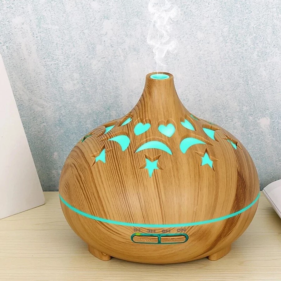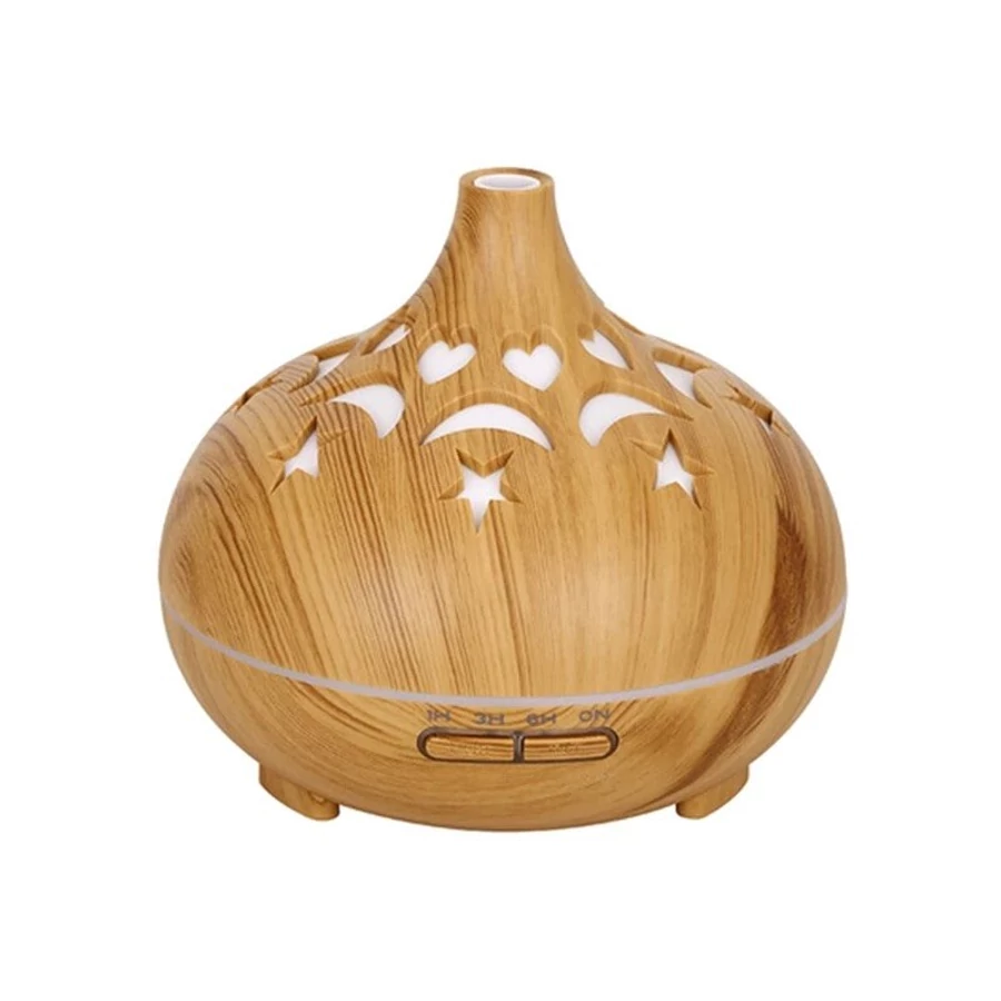 Aromaterapeutický odparovač s efektom dreva, ultrazvukový zvlhčovač vzduchu, difuzér vône s diaľkovým ovládaním - v tvare cibule, svetelný vzor