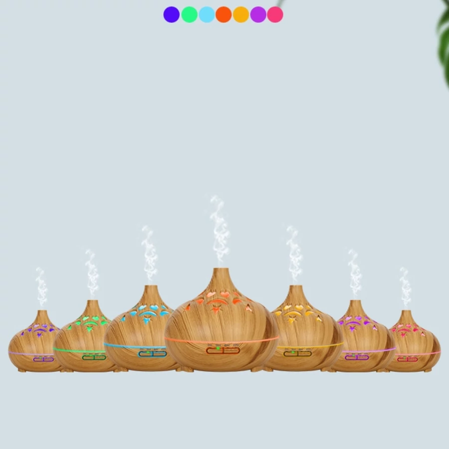 Aromaterapeutický odparovač s efektom dreva, ultrazvukový zvlhčovač vzduchu, diaľkové ovládanie vône - v tvare cibule, svetelný vzor