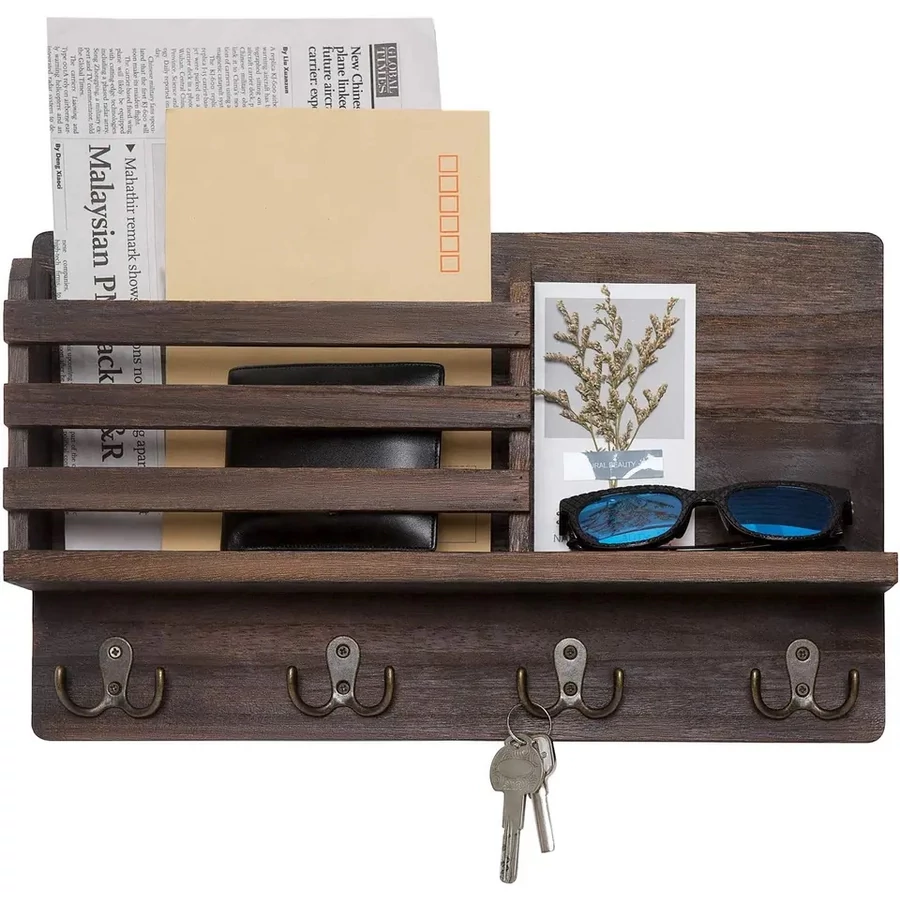 Elite Home® Nástenný rustikálny drevený držiak na kľúče a dokumenty