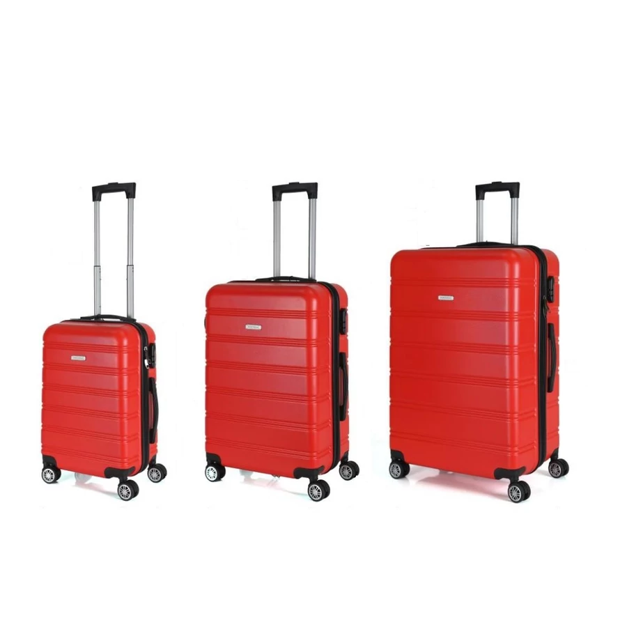 Royalty Line Sada 3 pevných kufrov so 4 dvojitými kolieskami, červená