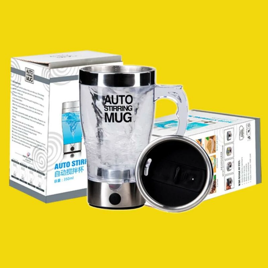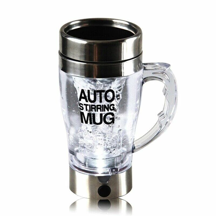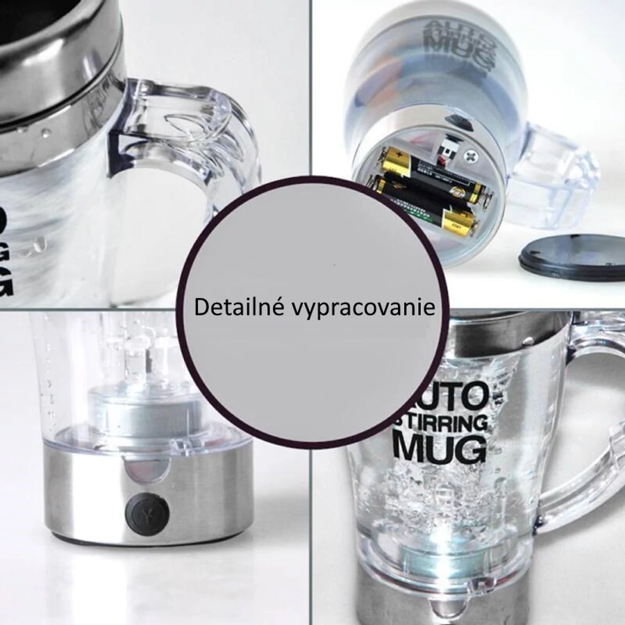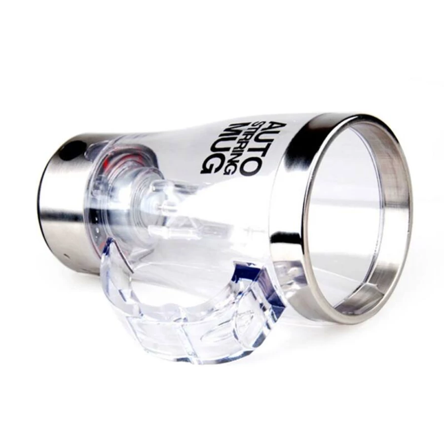 Samomiešavací priehľadný hrnček, lenivý hrnček, hrnček do auta, s motorickým miešadlom