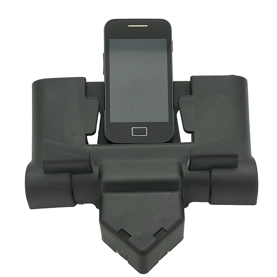 Praktické doplnkové príslušenstvo určené pre spinningový bicykel opísaný na webovej stránke. Jeho dizajn je dokonale prispôsobený riadidlám. Plastové pazúry na zadnej strane montážnej dosky presne zapadajú a zabezpečujú dokonalú stabilitu. Pomocou stredovej hlbokej časti môžete počas cvičenia sledovať obrazovku telefónu, zatiaľ čo predné výstupky pomáhajú udržať telefón stabilný v polohe ležmo. Predné výčnelky sú otvorené do strán, takže do nich môžete umiestniť aj veľké tablety v polohe ležmo aj v stoji.