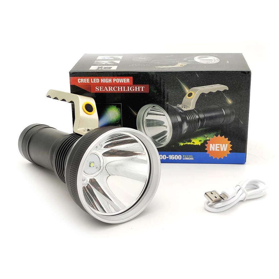 Masívne kovové puzdro s krytím IPX6, odolná, robustná konštrukcia, mimoriadne výkonná pátracia lampa. Dva zabudované články 18650 zaisťujú dlhý čas prevádzky. Svietidlo možno nabíjať cez port micro USB pomocou priloženého kábla USB, pričom port USB možno použiť na nabíjanie iných zariadení a možno ho použiť aj ako externú batériu. Jeho rukoväť a tlačidlo na prednej strane sú ergonomicky navrhnuté tak, aby sa dali stabilne a pohodlne uchopiť aj počas dlhšieho používania. Má maximálny svetelný výkon 1600 lúmenov a dosah osvetlenia až 200 metrov. Dokáže zabezpečiť až 3-5 hodín nepretržitého používania.